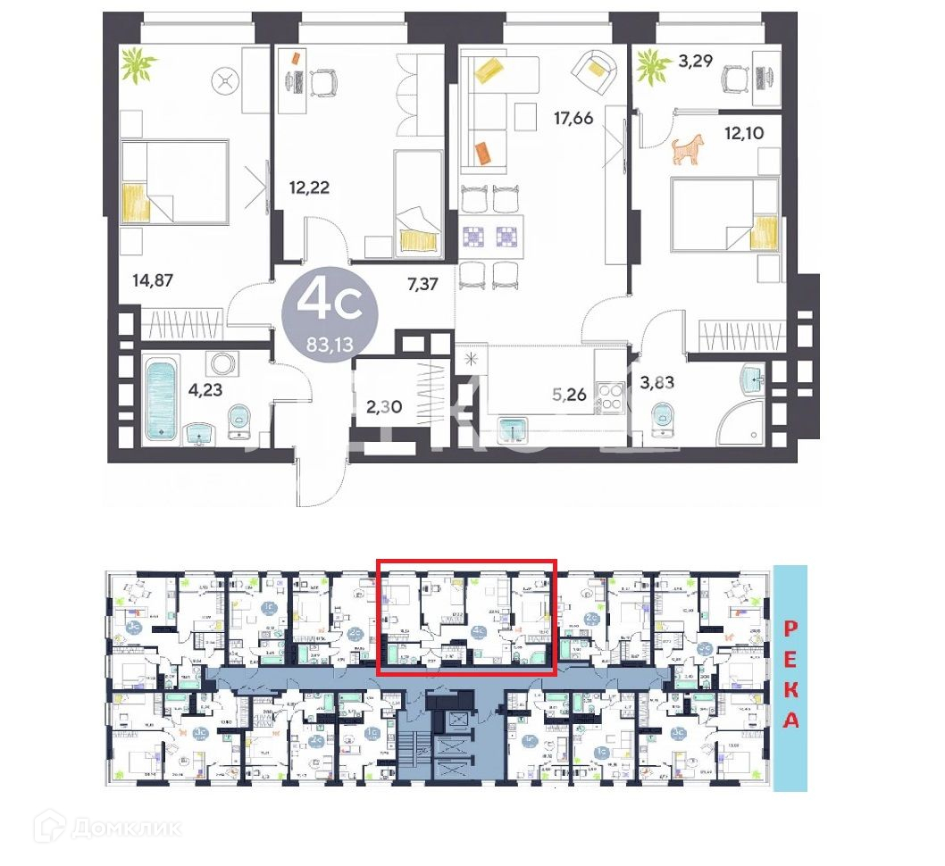 Общая площадь 83.3 м2