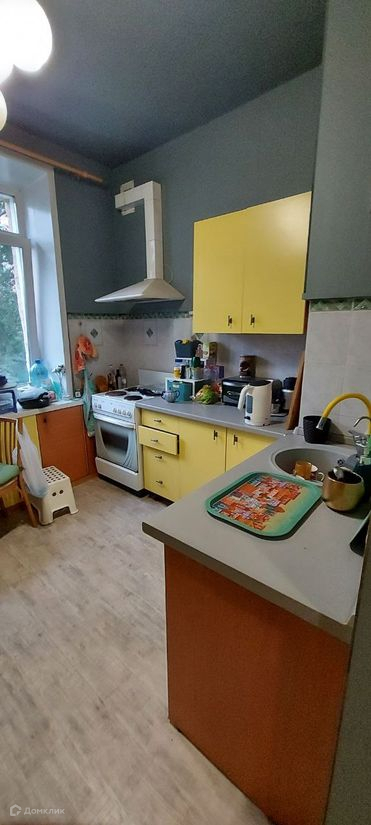 В стоимость квартиры входит кухонный гарнитур с навесными шкафами, электрическая плита, вытяжка, посудомоечная машина, стулья на кухне.