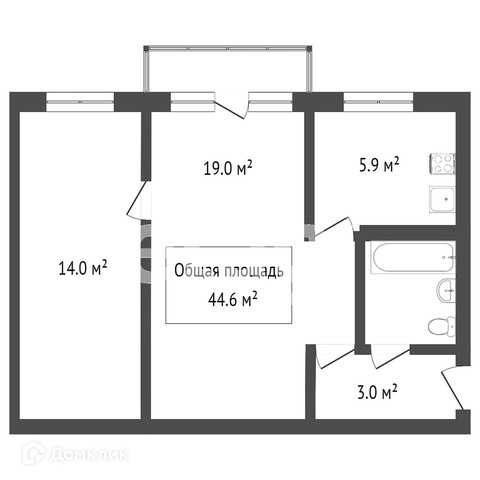Общая площадь 44 м2