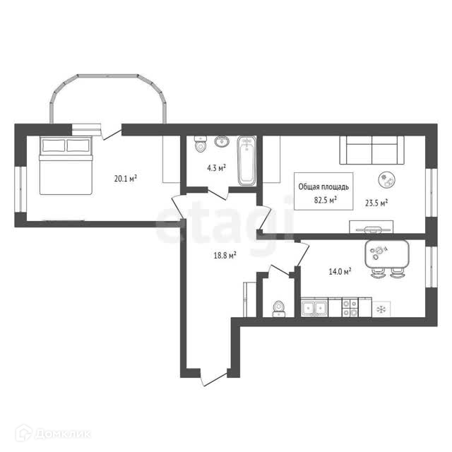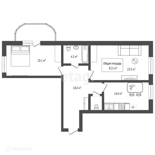 Общая площадь 82.5 м2