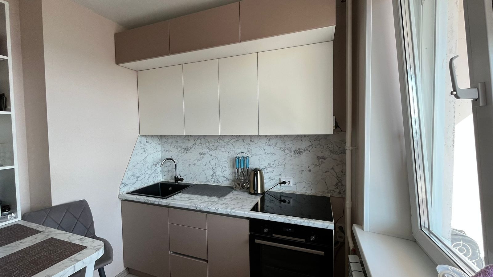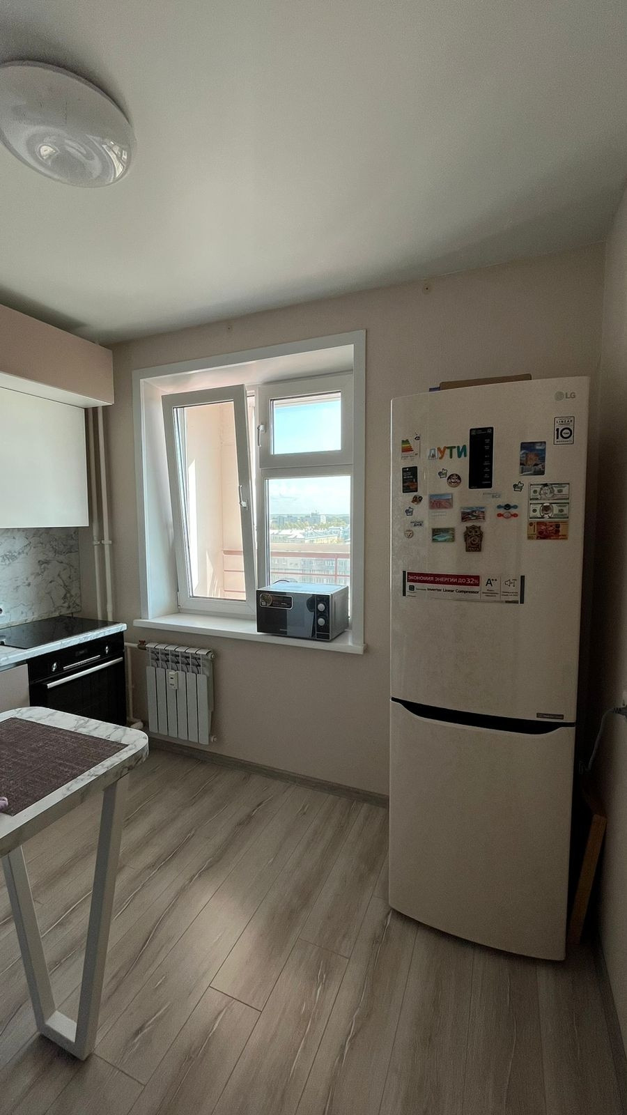 В продаже комфортная уютная квартира. Большая светлая комната, в которой хватит места даже семье с ребенком. Также огромная лоджия 9 кв. метров с красивым видом на город,  которую можно утеплить, и сделать там рабочий кабинет, chill зону или вторую комнату. В коридоре имеется очень вместительная и функциональная прихожая. Кухонный гарнитур и холодильник остаётся будущему владельцу в подарок:)