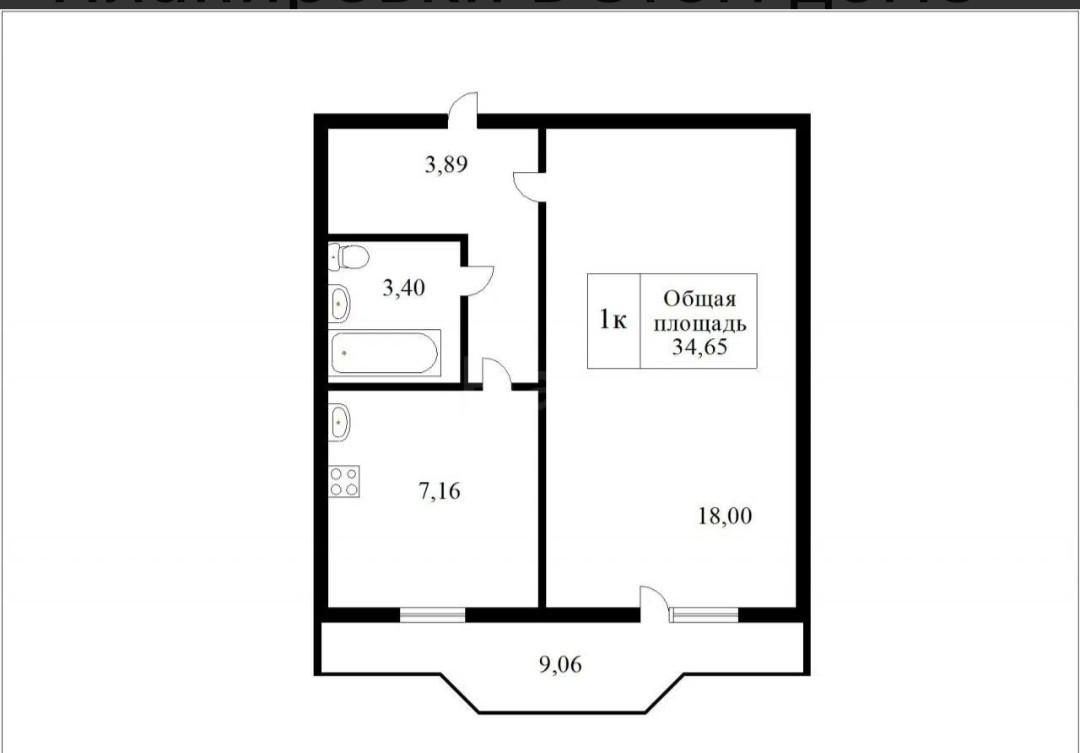 Общая площадь 34.65 м2