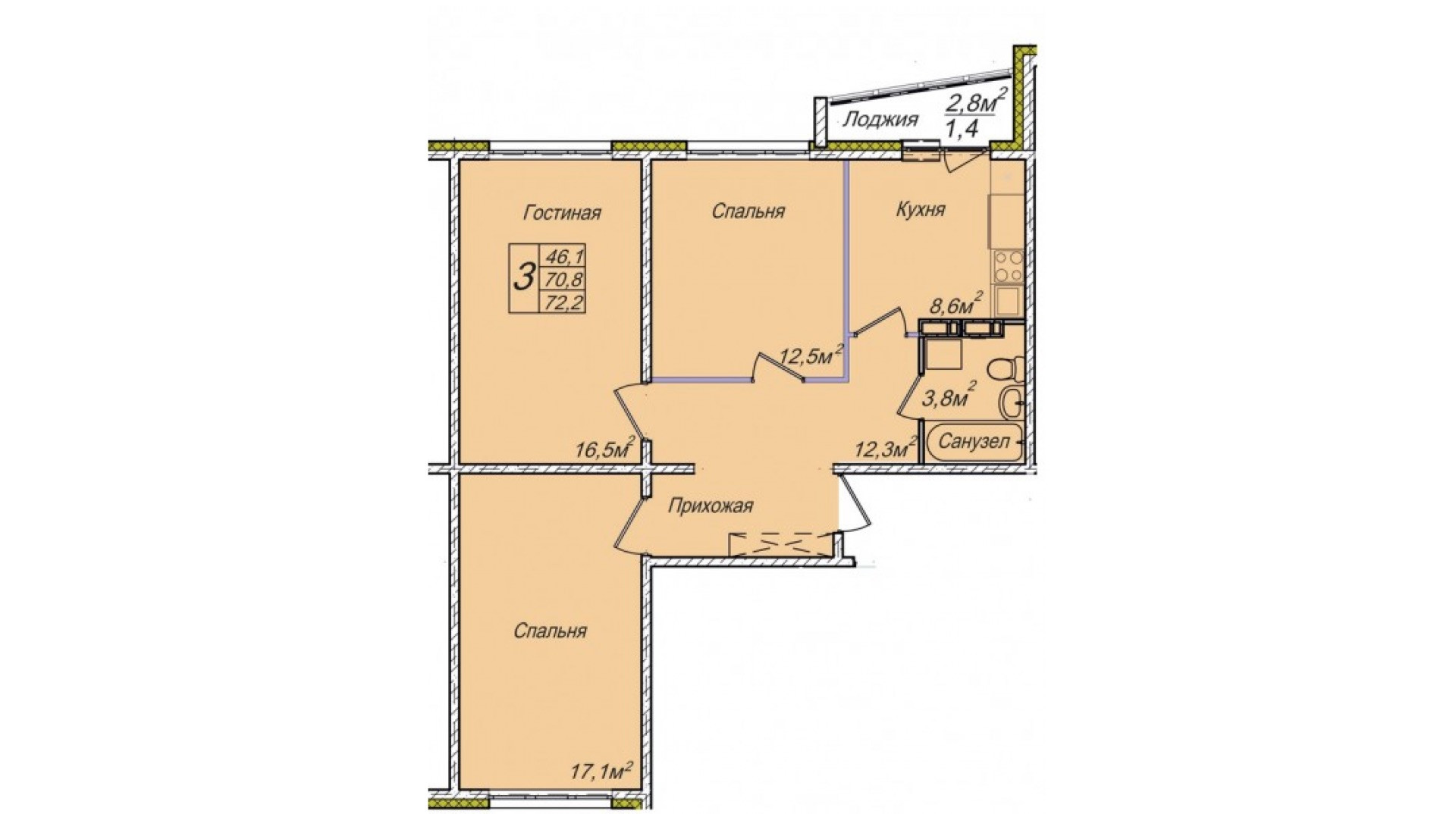 Общая площадь 72 м2