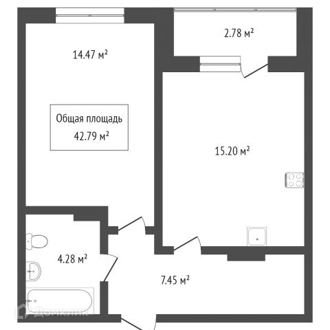 Общая площадь 52 м2