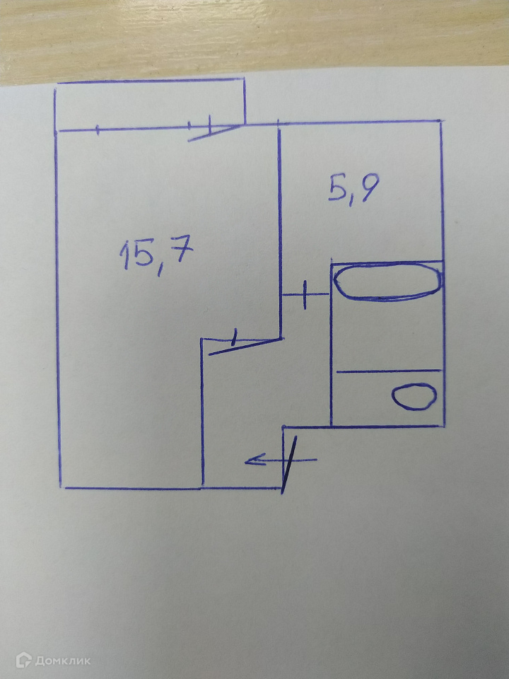 Жилая площадь 15.7 м2