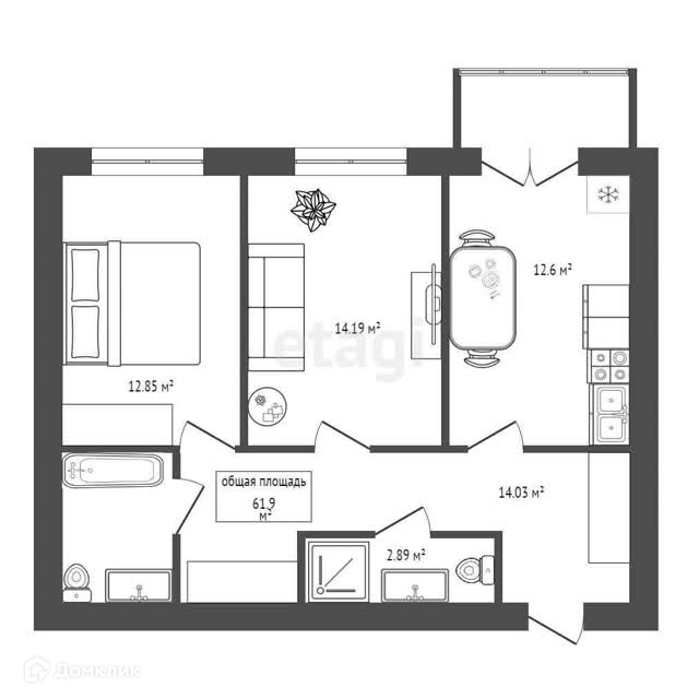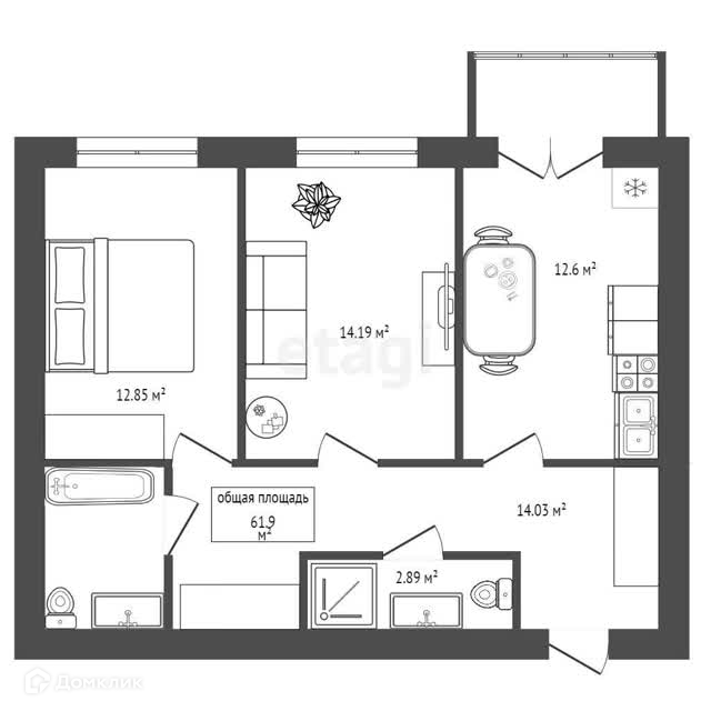 Общая площадь 62 м2