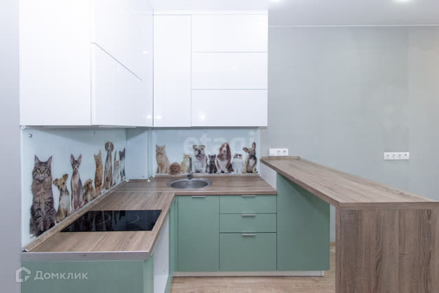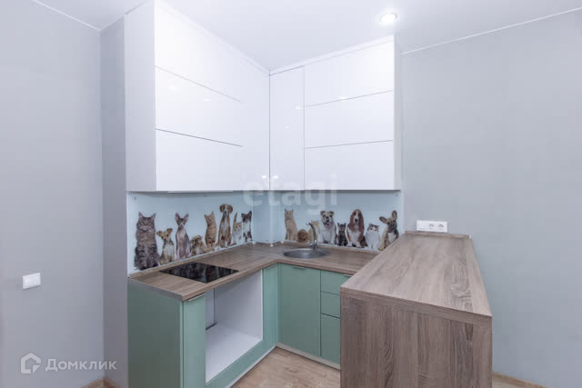 Кухня сделана под заказ, шкафы на доводчиках, подключена подсветка. Фартук из каленого стекла.