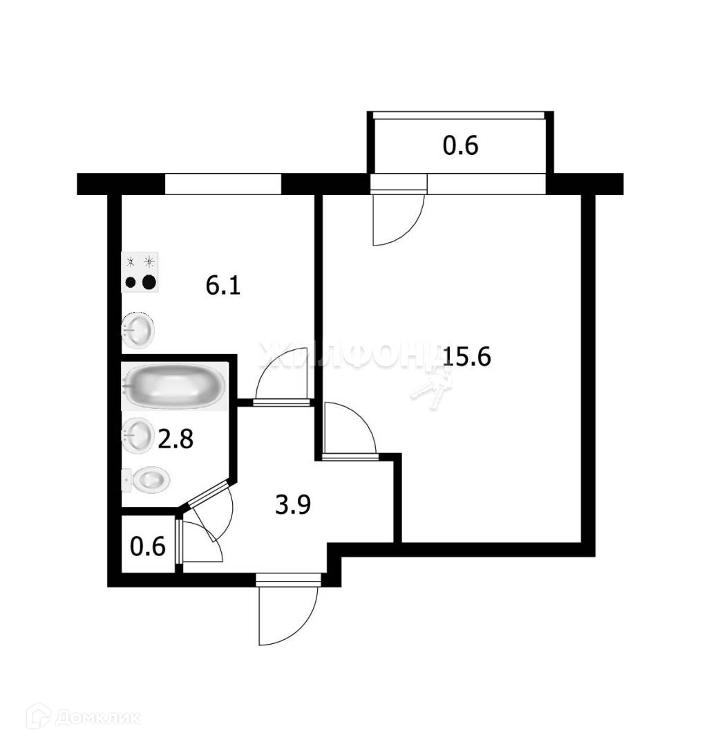 Жилая площадь 15.6 м2