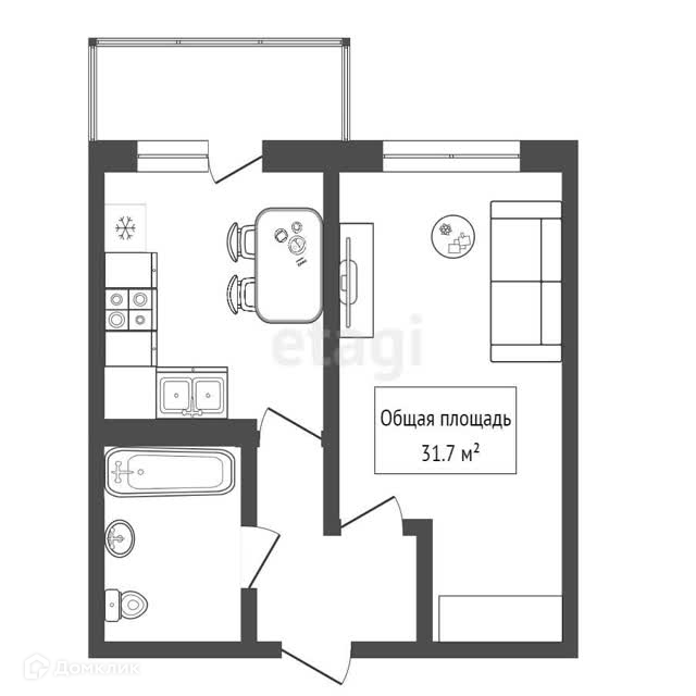 Общая площадь 31.7 м2