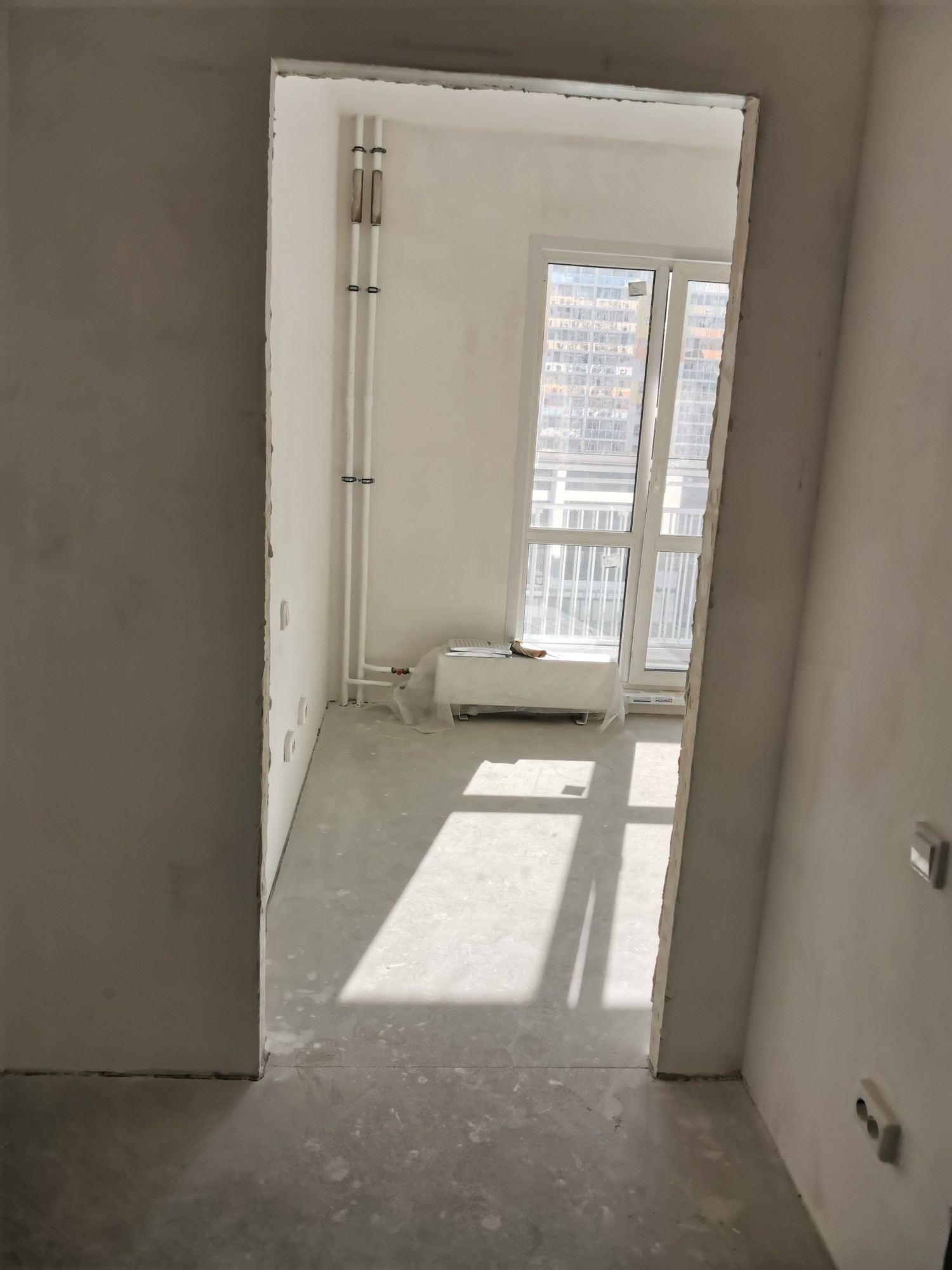 В квартире сделана предчистовая отделка. Окна во двор. Большая лоджия - 7,4 м2 плюс к основной плащади квартиры.