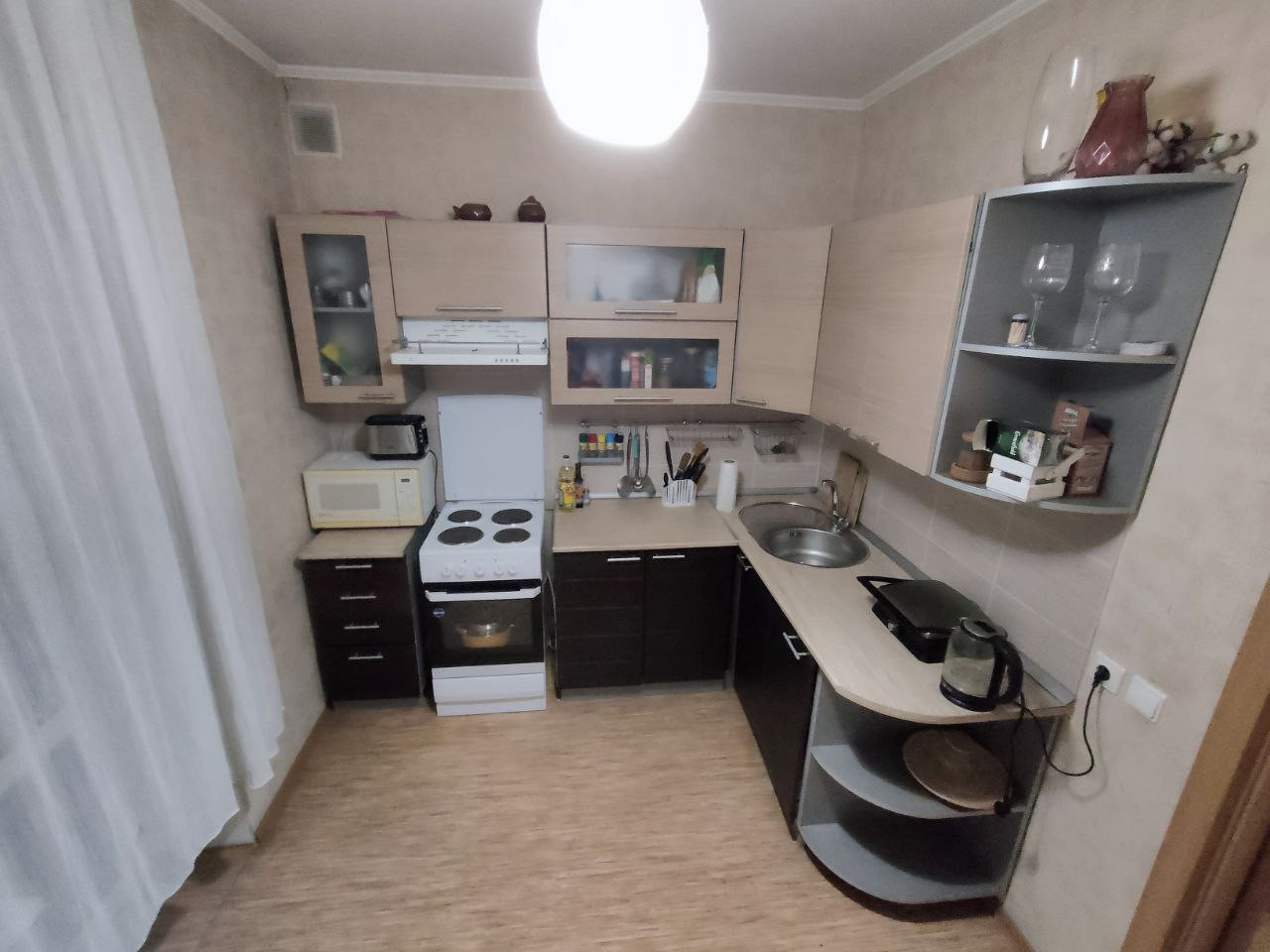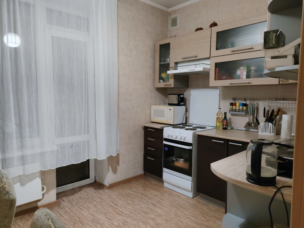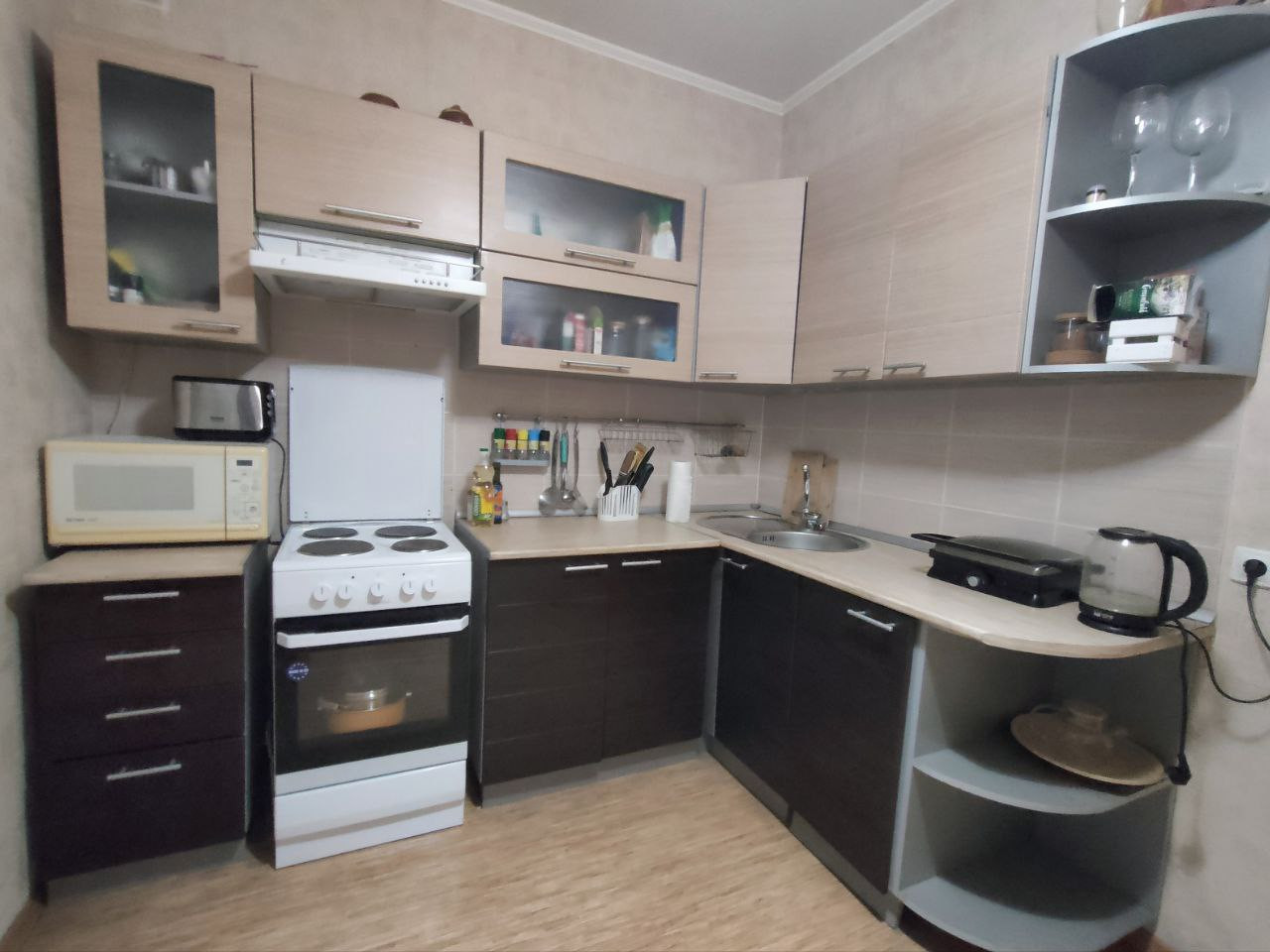 В квартире выполнен качественный ремонт в светлых тонах,с использованием европейских материалов. Вся мебель и техника остаются.