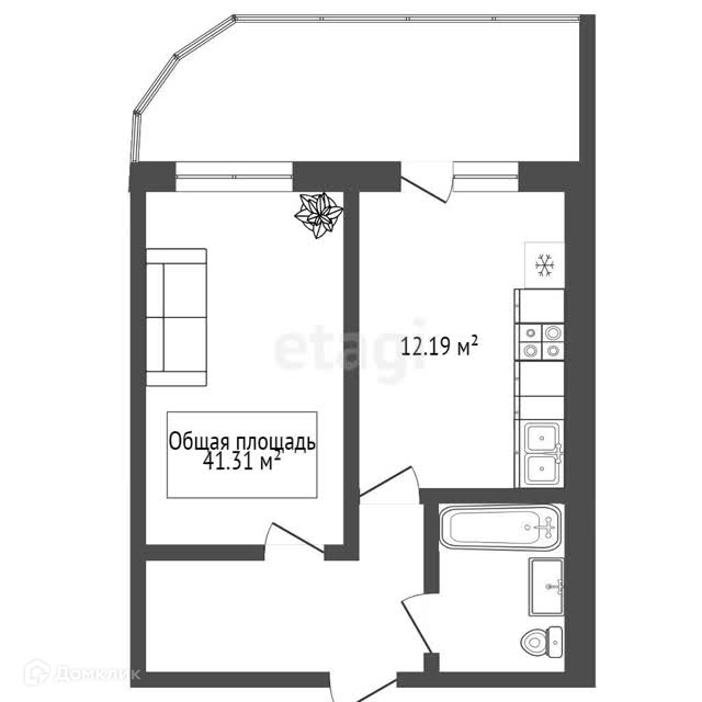 Общая площадь 41.31 м2