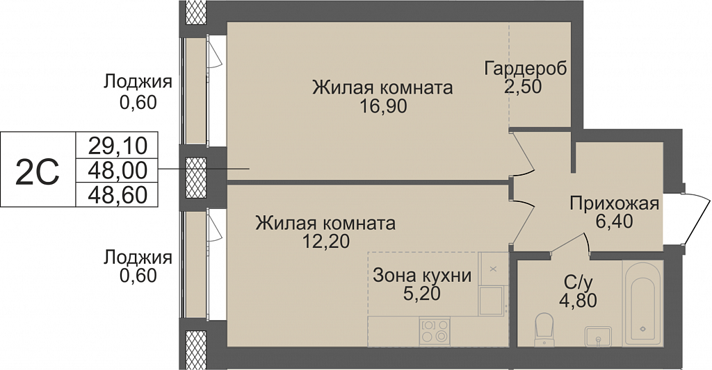 Общая площадь 48 м2