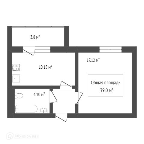 Общая площадь 39 м2