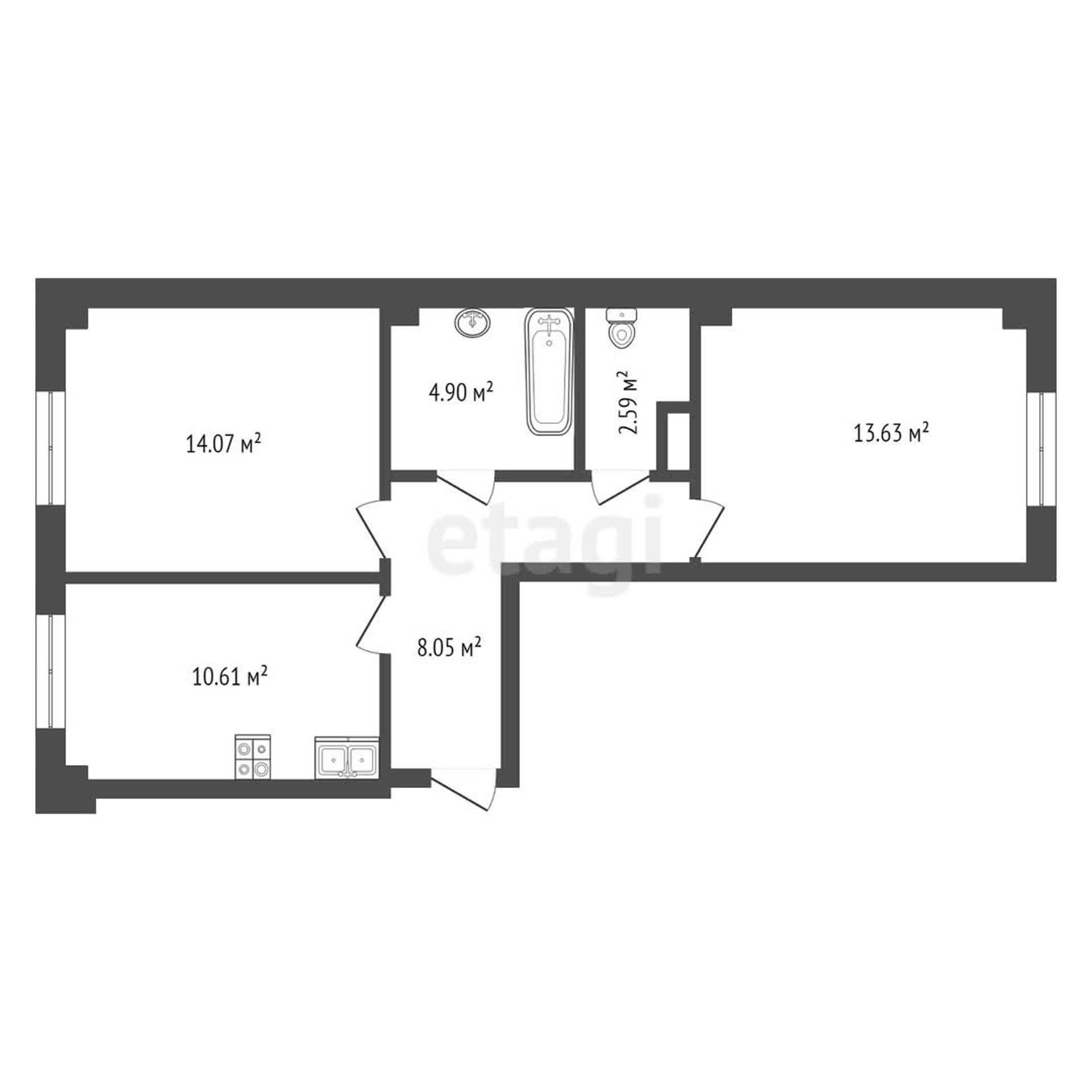 Общая площадь 53.8 м2