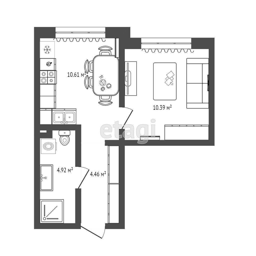 Площадь кухни 10.6 м2