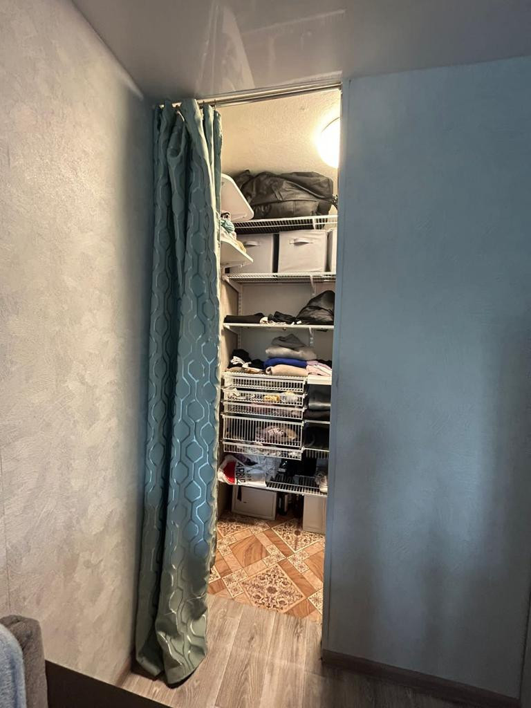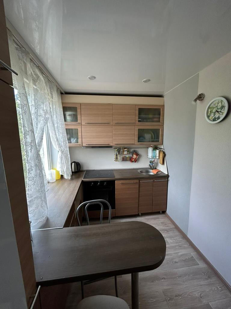 В квартире остается кухонный гарнитур, духовой шкаф, варочная панель, посудомоечная машина.