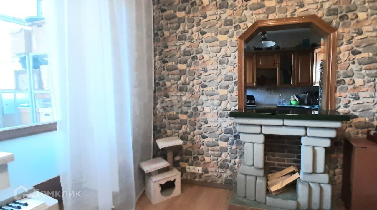 В зале фальш-камин. Между залом и кухней стилизованное окно.