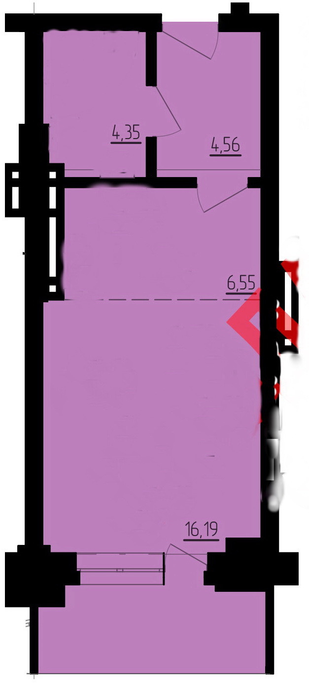 Общая площадь 35.5 м2