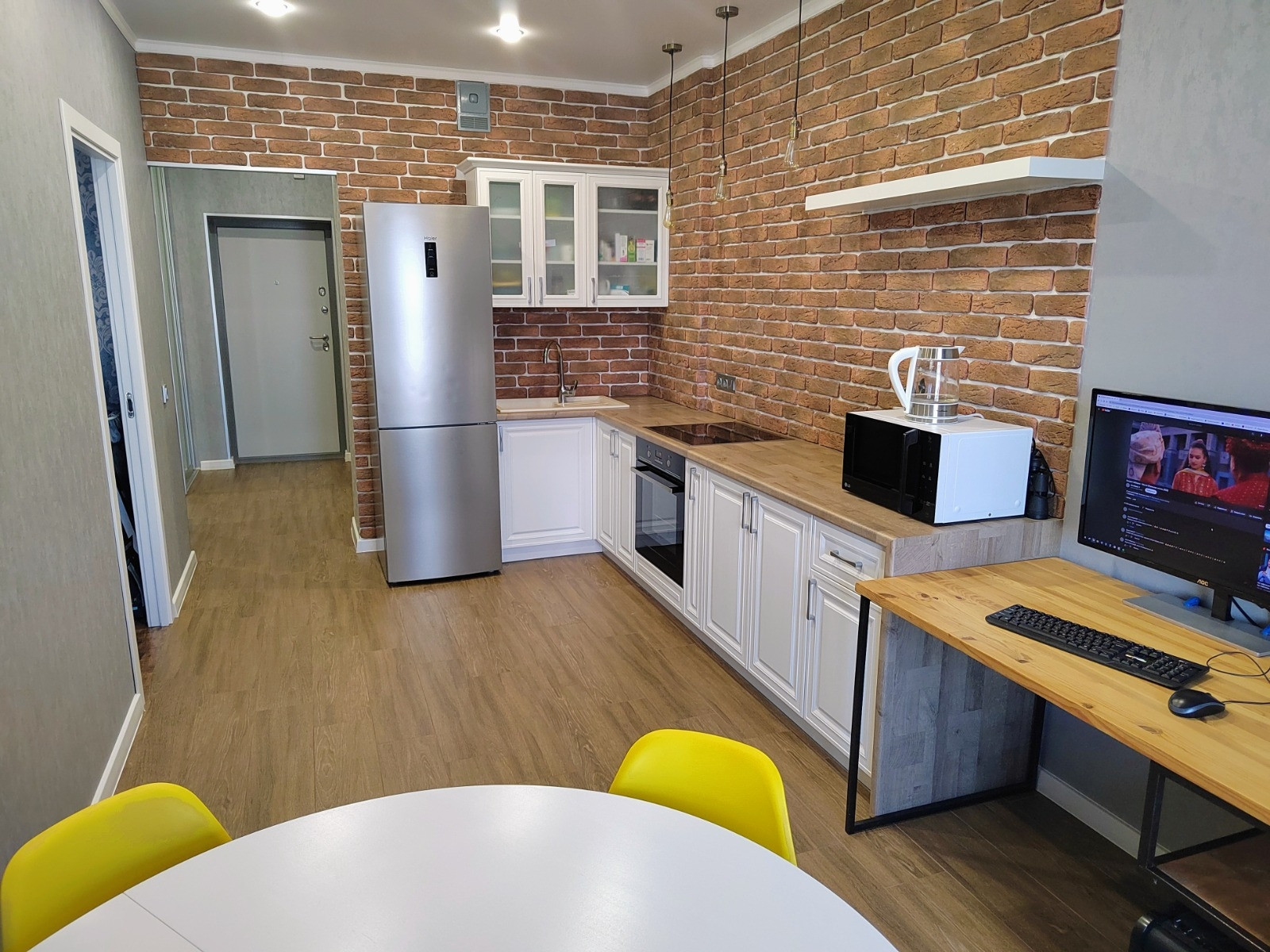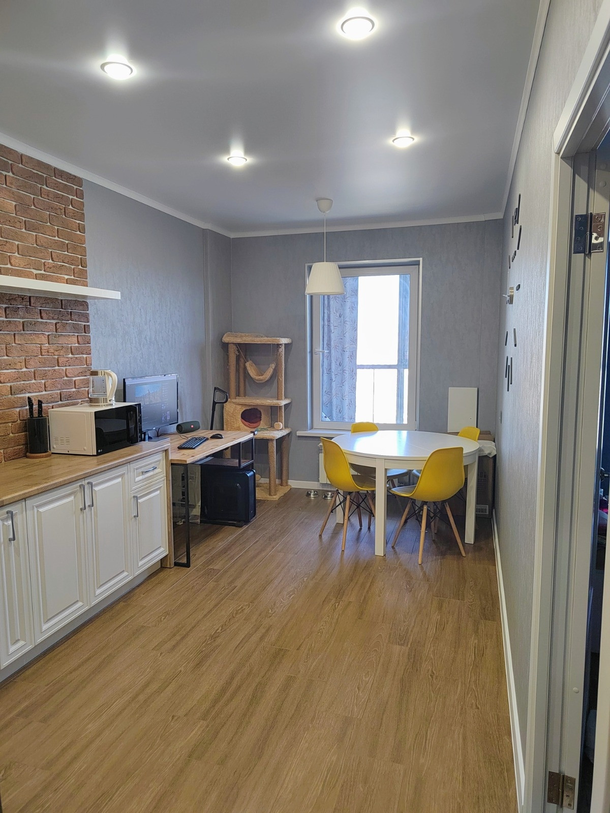 Видовая квартира, окна на реку и праздничные салюты. Евроремонт. Остаётся большой шкаф купе, кухня со встроенной техникой, кондиционер, можно обговорить дополнительные условия по остальной мебели\технике.