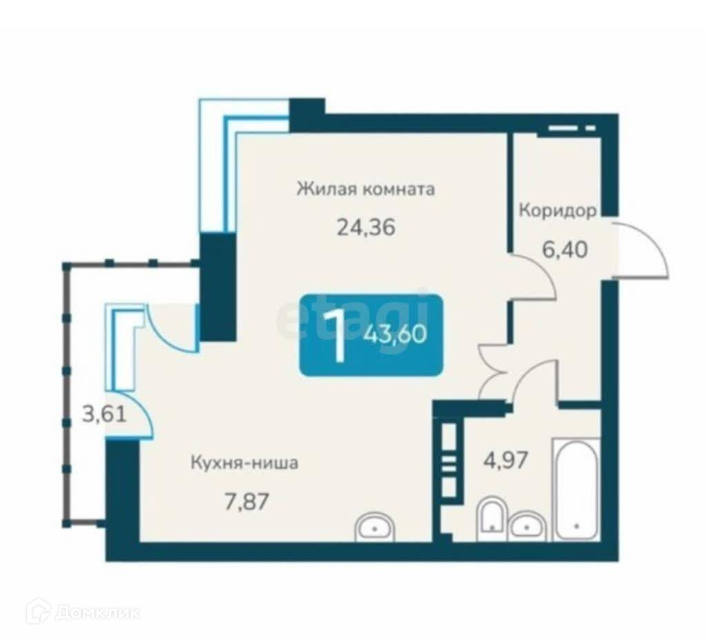 Балкон, лоджия 1 балкон