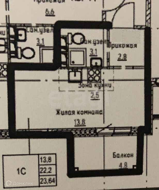 Общая площадь 24.6 м2