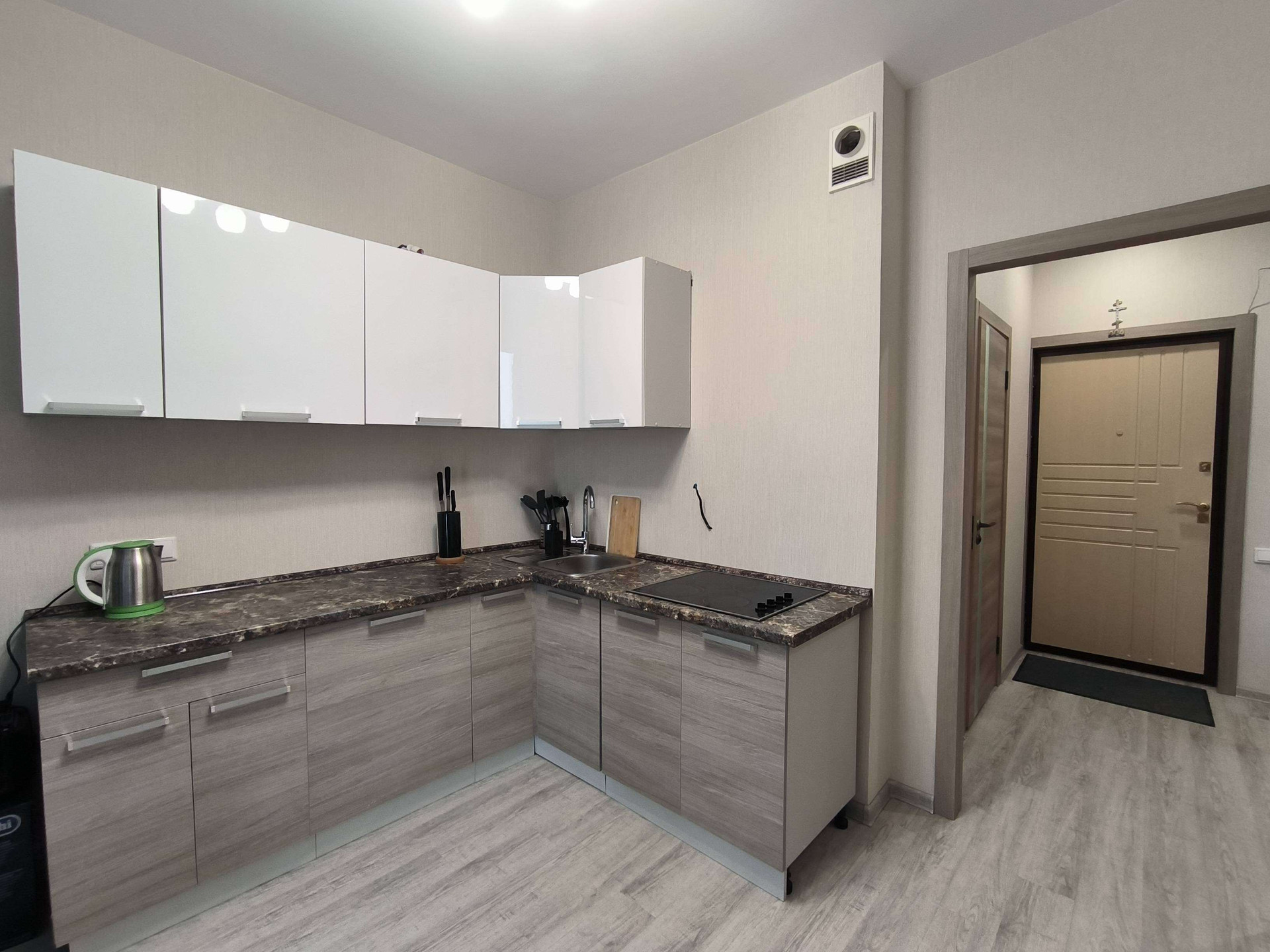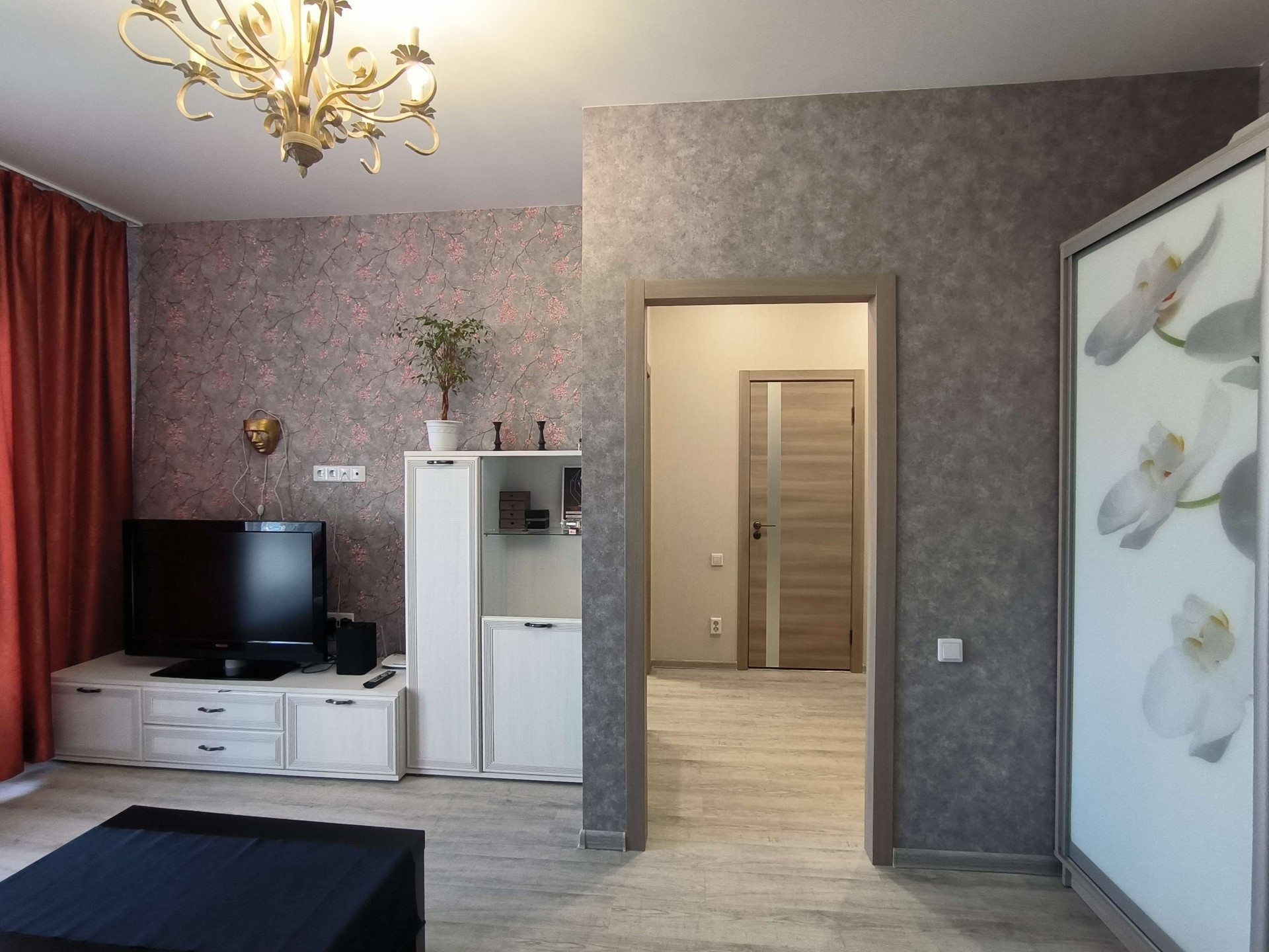 Покупателям в квартире остаётся кух гарнитур, варочная панель, прихожая, шкаф, диван, тумба под тв и сам тв.