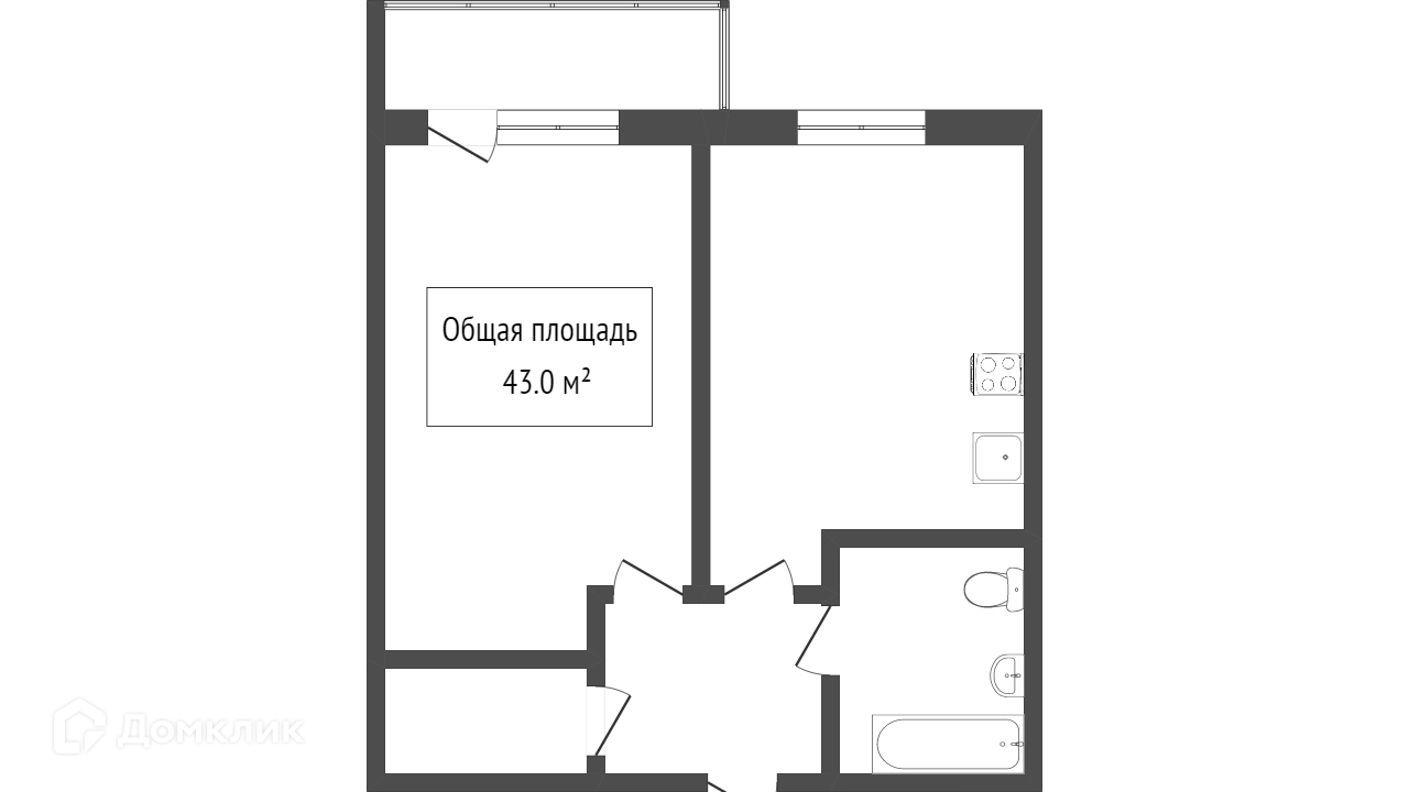 Общая площадь 43.3 м2