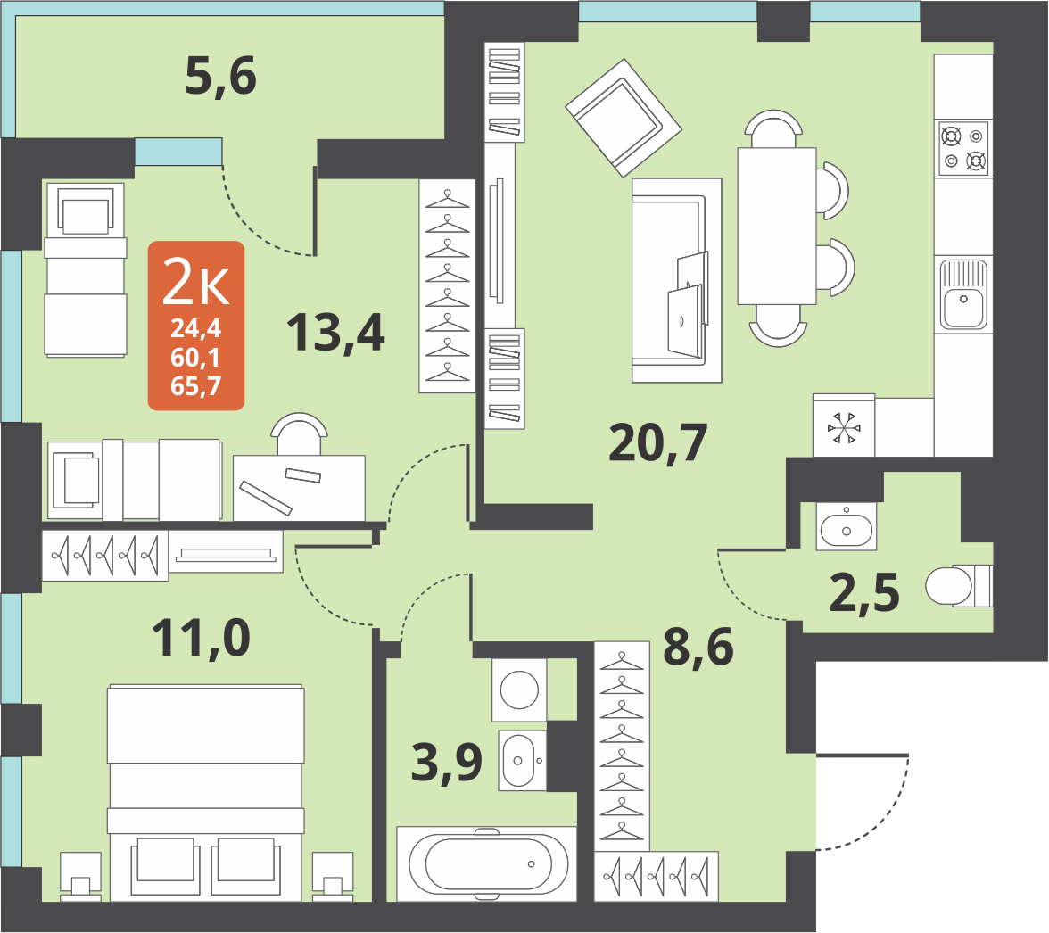 Общая площадь 60 м2