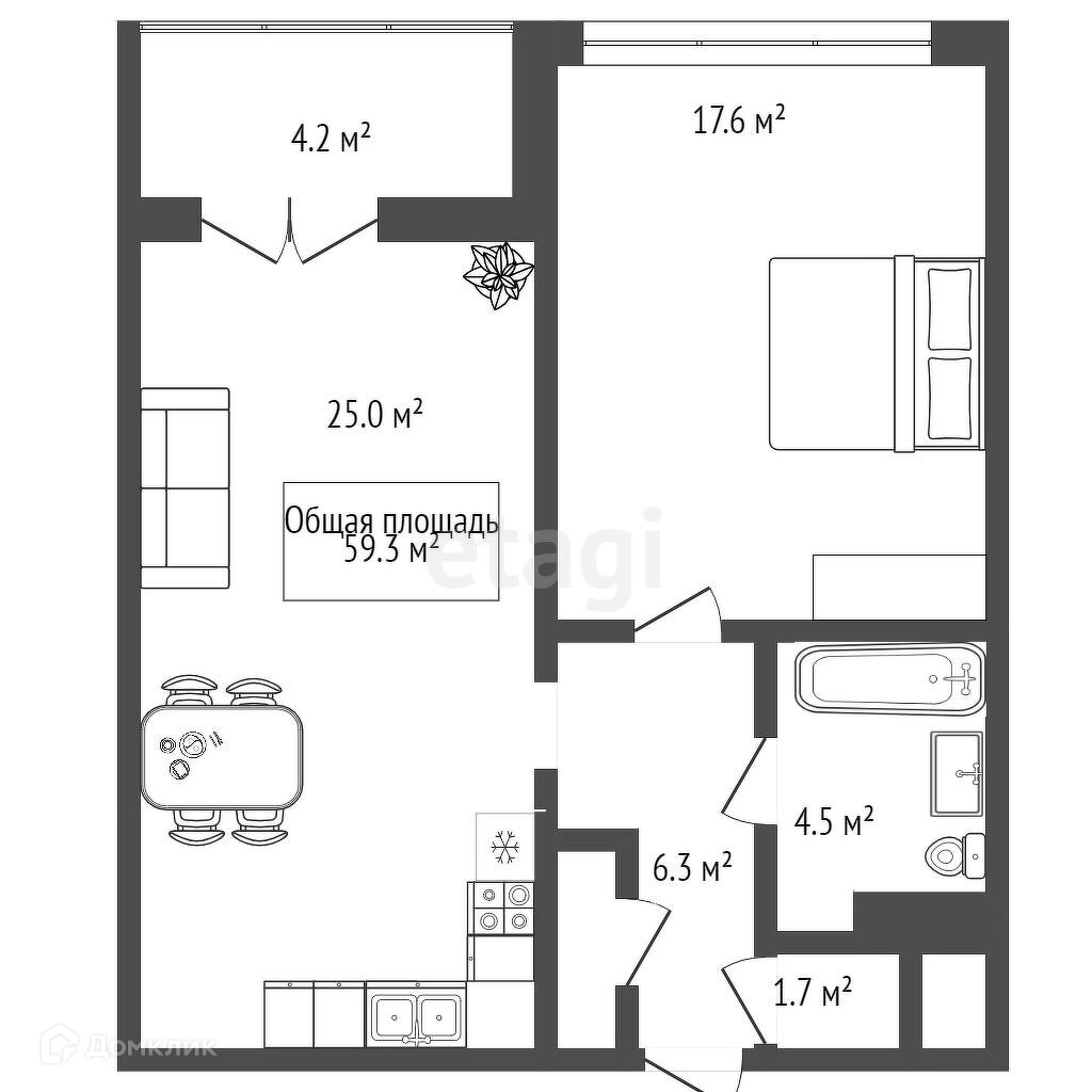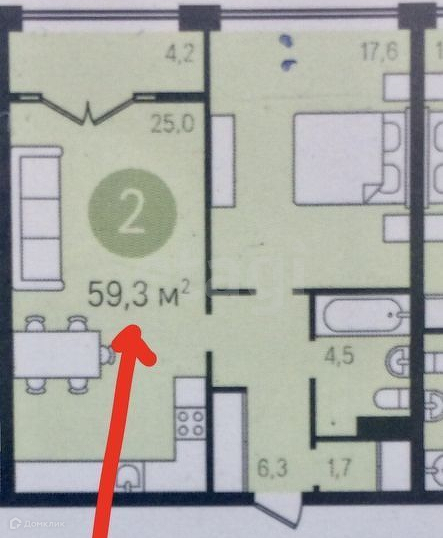Общая площадь 58.8 м2