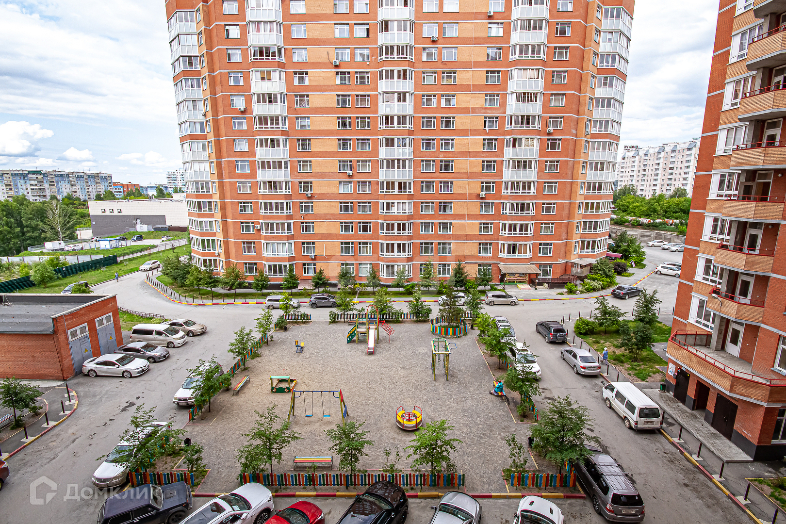 Жилой комплекс с благоустроенной, огороженной (на въезде есть шлагбаум с пультом для жильцов) озеленëнной территорией, с современными детскими площадками.