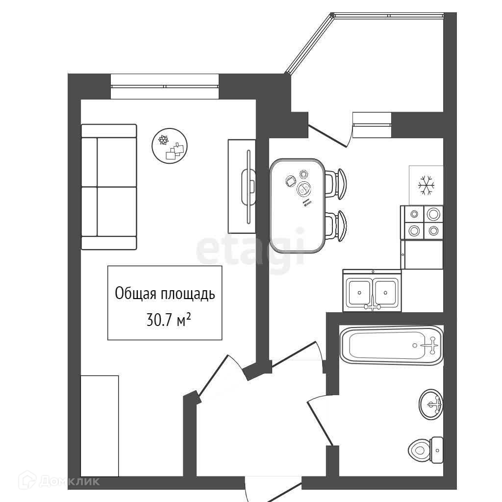 Общая площадь 30.7 м2