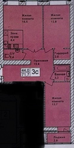 Жилая площадь 45 м2