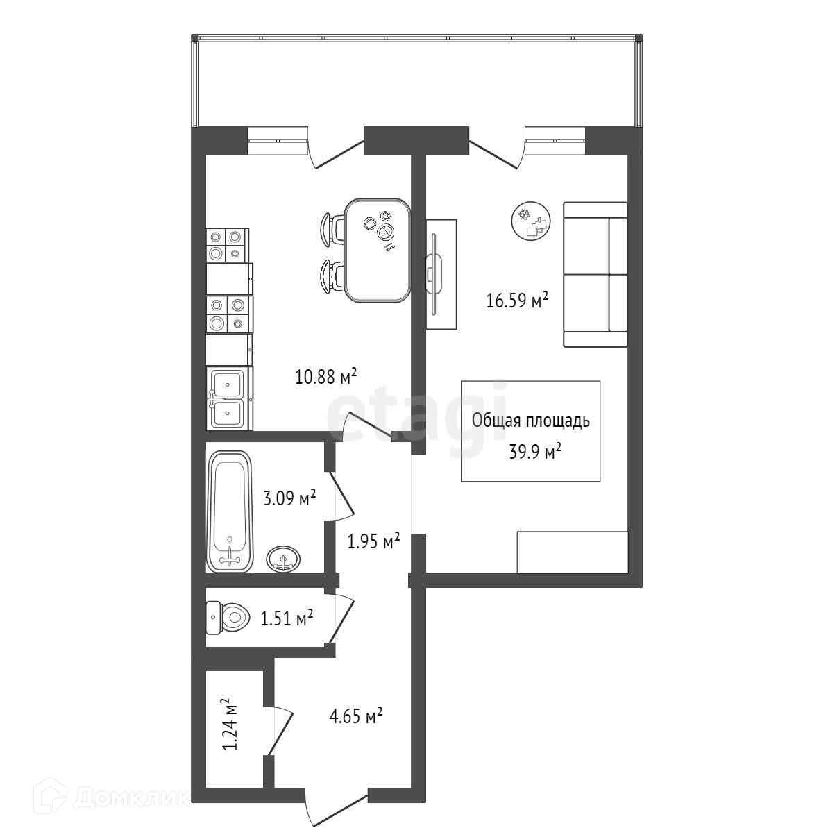Общая площадь 39.9 м2