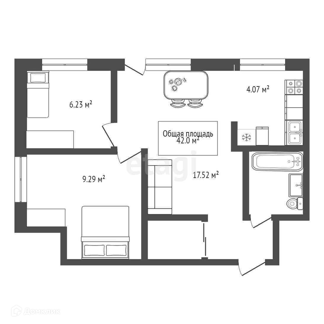 Общая площадь 42 м2