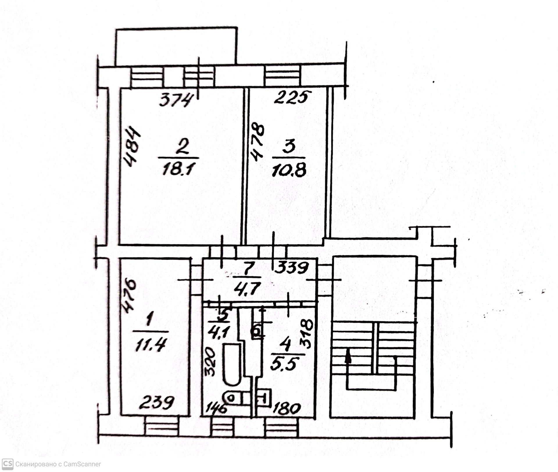 Общая площадь 55 м2