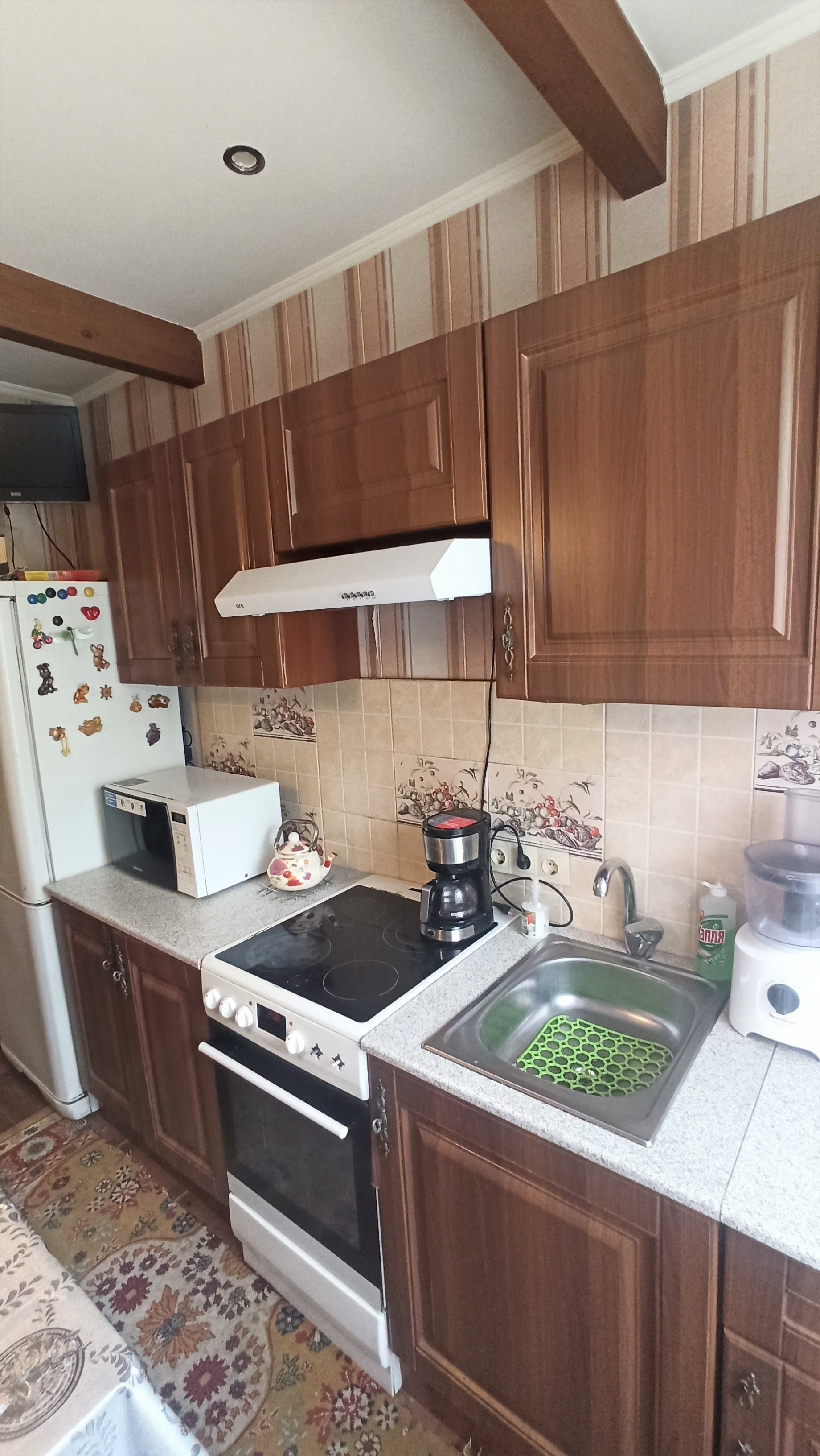 - кухонный гарнитур с печью, холодильником, вытяжкой