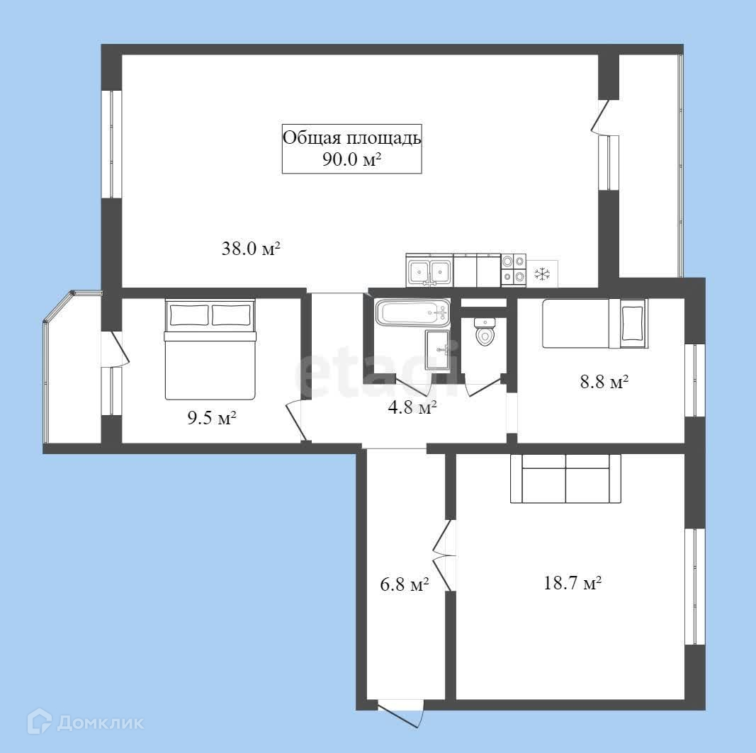 Общая площадь 90 м2