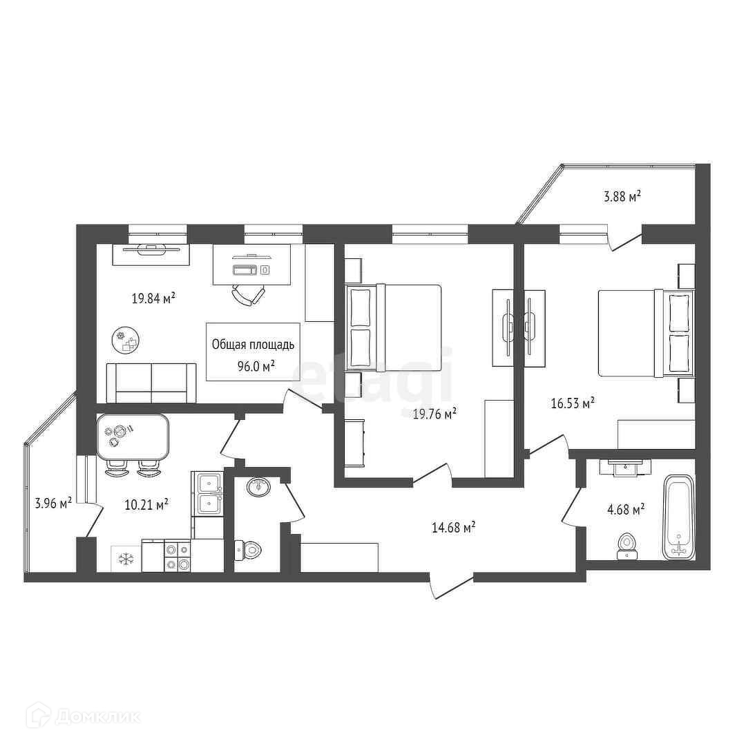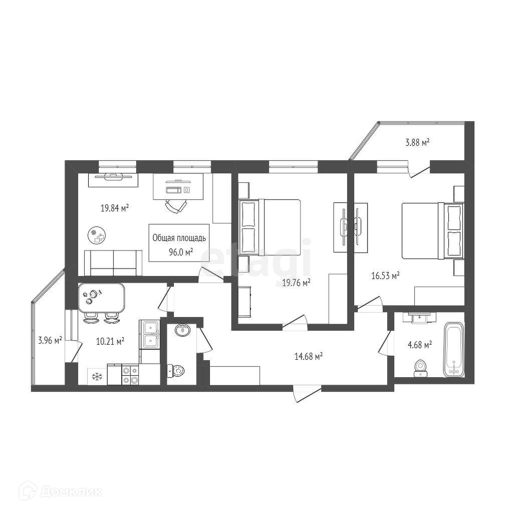 Общая площадь 96 м2
