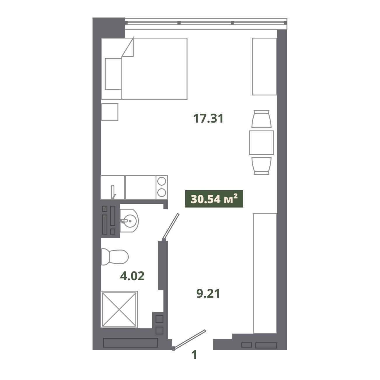 Общая площадь 30.3 м2