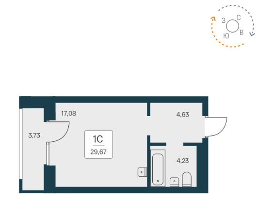 Общая площадь 29.67 м2