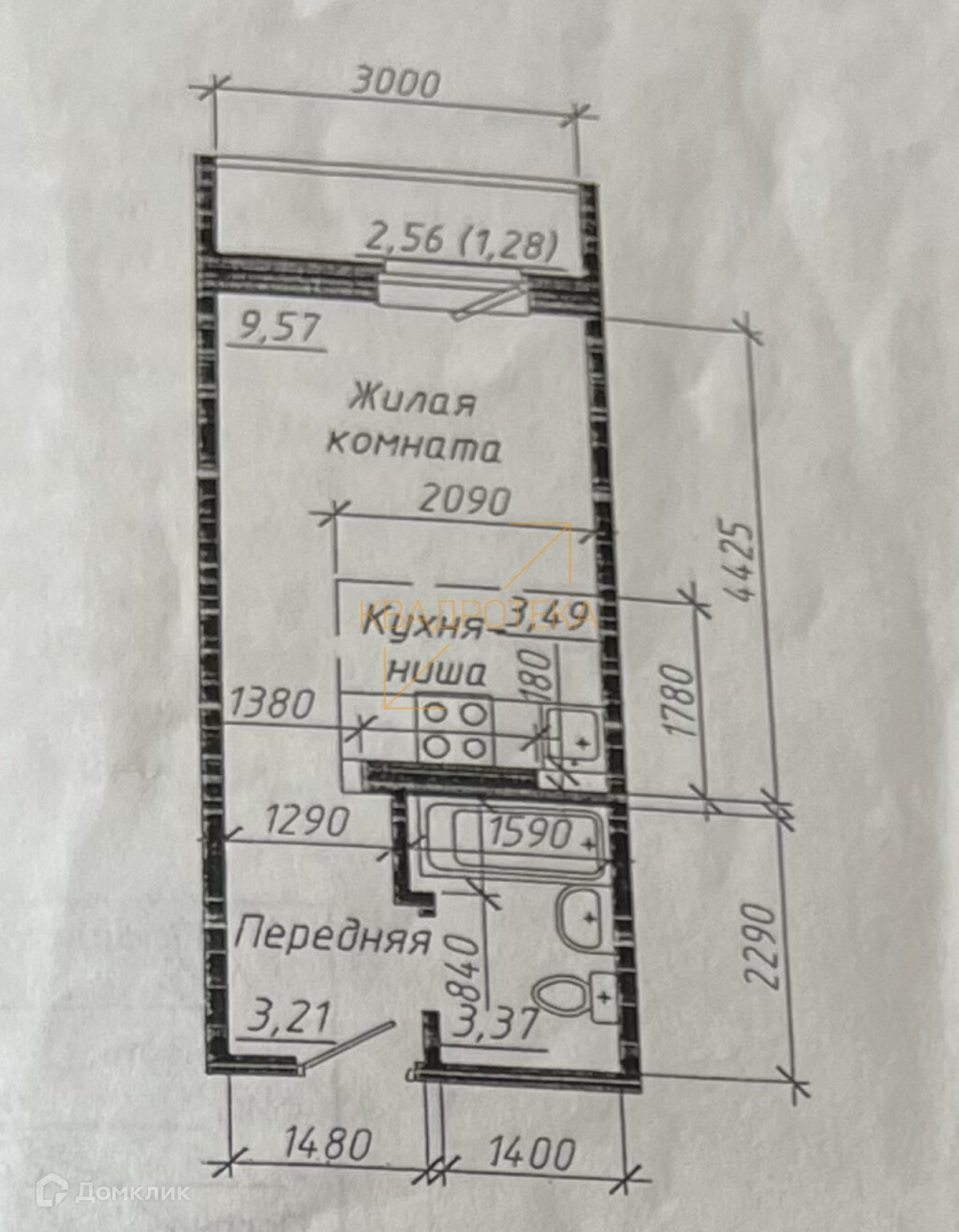 Балкон, лоджия 1 балкон