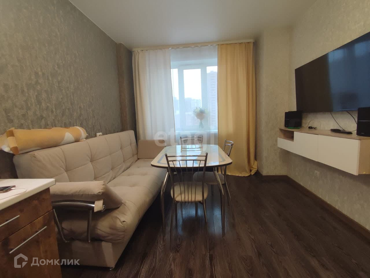 В квартире выполнен современный ремонт. Остается практически вся мебель. За исключением стиральной машины и дивана в кухне-гостинной.