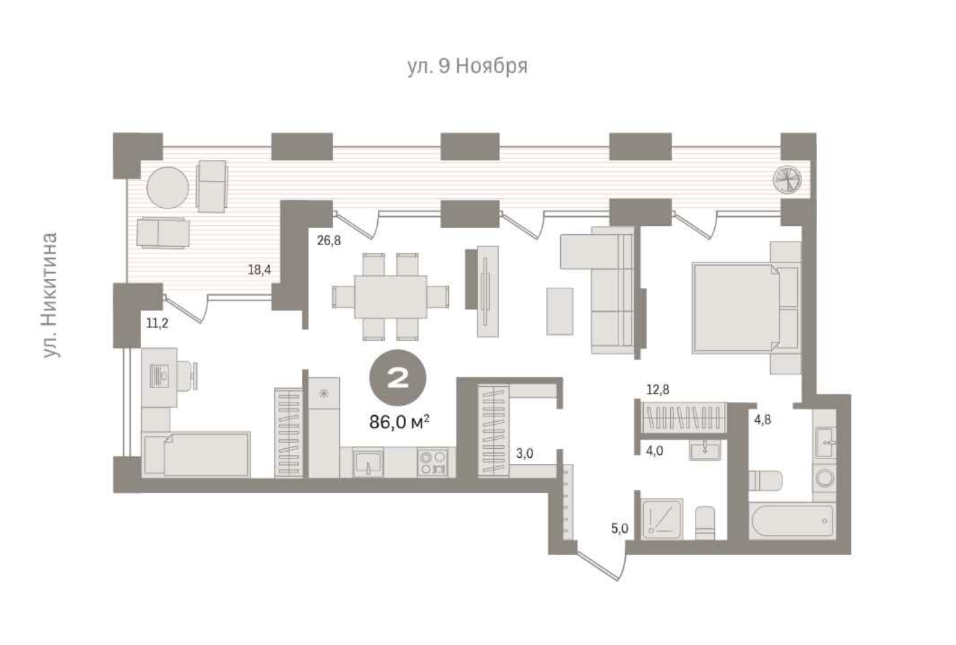 Общая площадь 86 м2