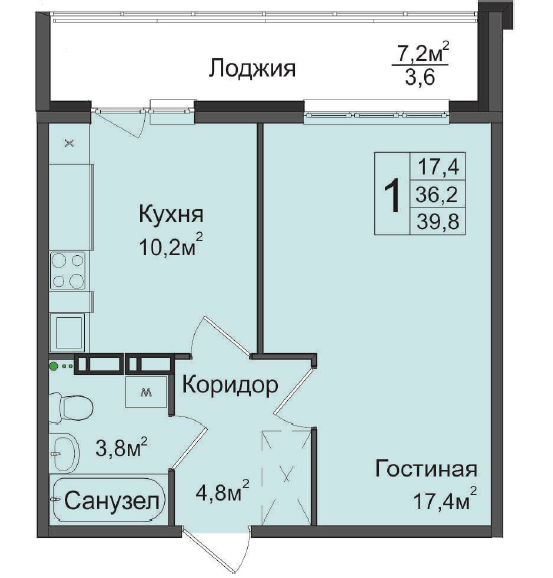 Общая площадь 36.1 м2