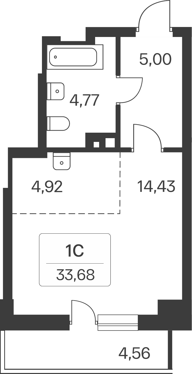 Общая площадь 33.68 м2
