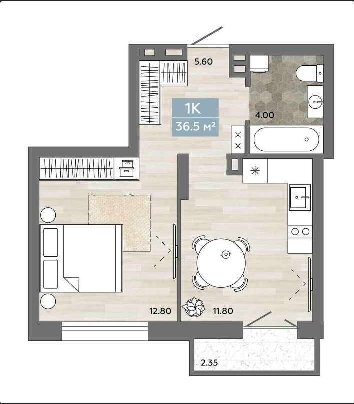 Общая площадь 36.1 м2
