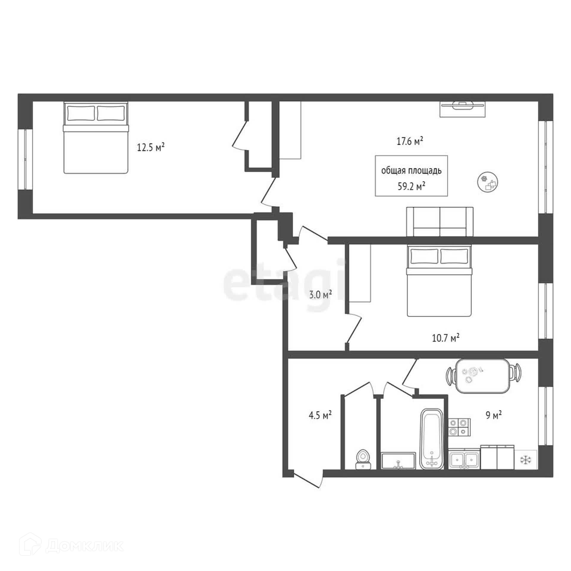 Общая площадь 59.2 м2