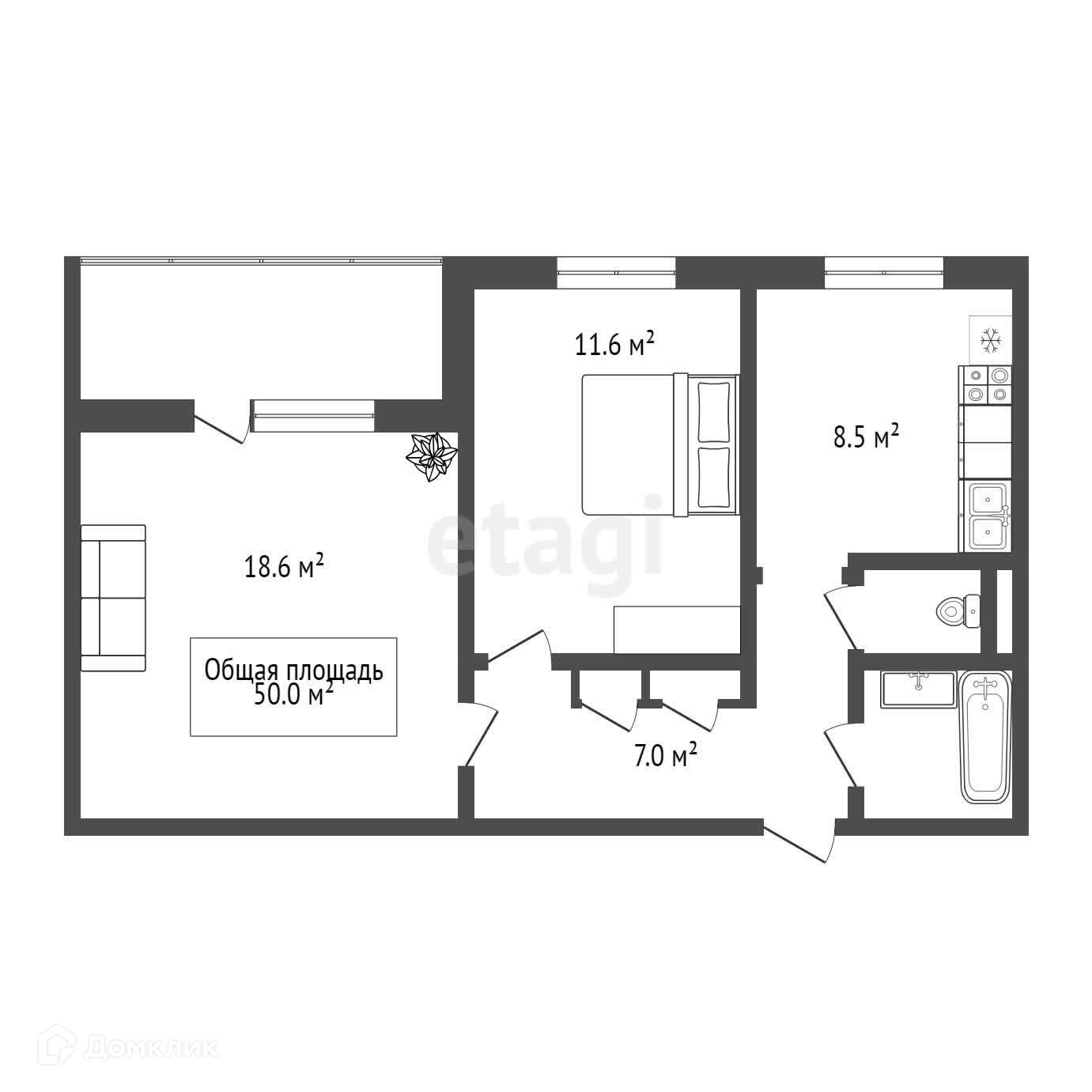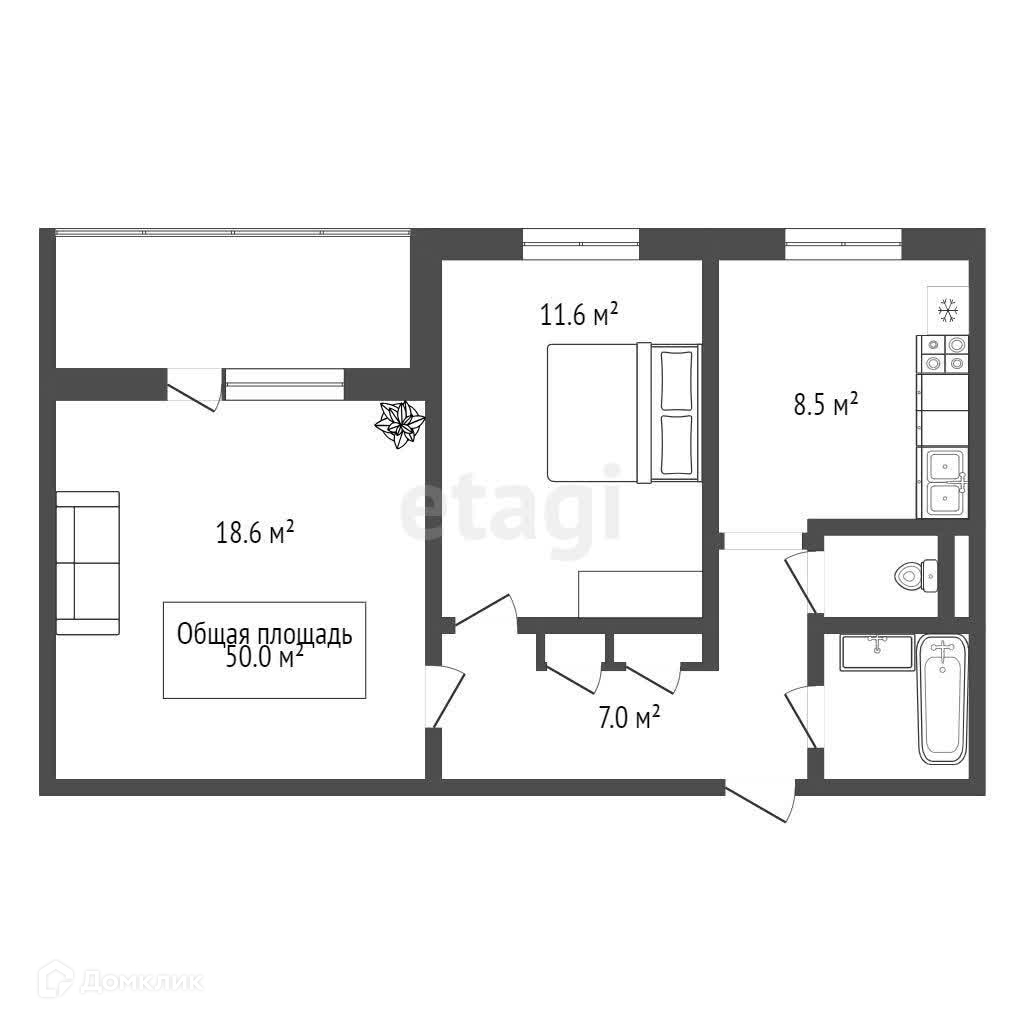 Общая площадь 50 м2