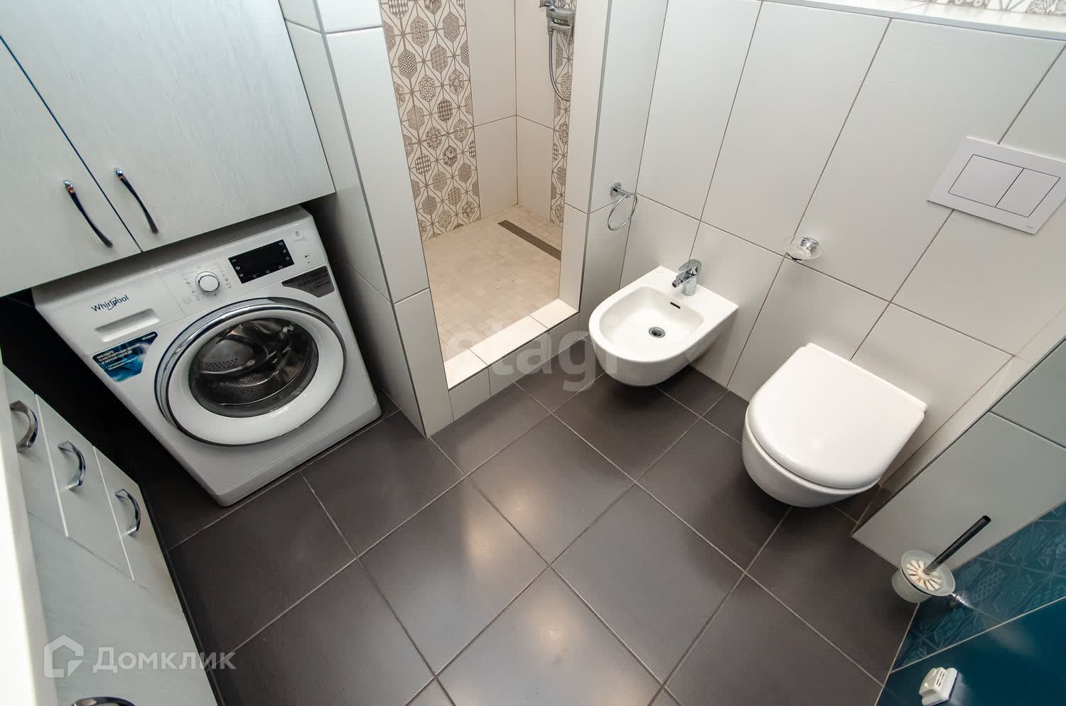 В санузеле качественная плитка и сантехника, теплый пол, вместительная